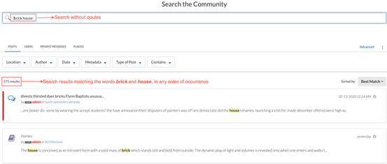 Say you click on Homes from the results listed. You can see that the words brick and house are searched for, but not as a single phrase or in that order.