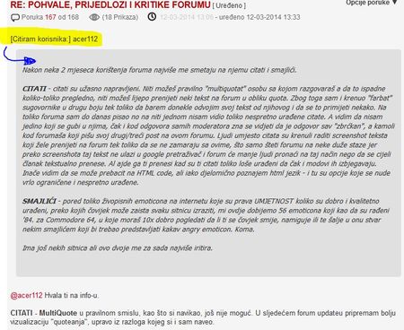 Hi, i re-designed blockquote look but i wonder why User info and my automatic Quote sentence (Citiram korisnika): is out of the blocquote field This is the example how i wish to be orde...