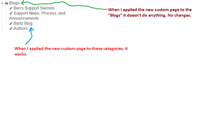 I've followed the "Creating a new page type" instructions to create a new custom page to override the Blog main page. For some reason, when I selected the custom page that I want to apply, hit save b...