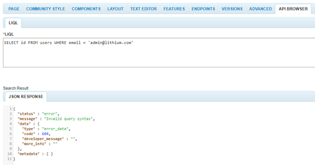 It seems the constraint for the email of the user's that you are trying to users is not supported i.e. you can't pass all fields after where clause.
