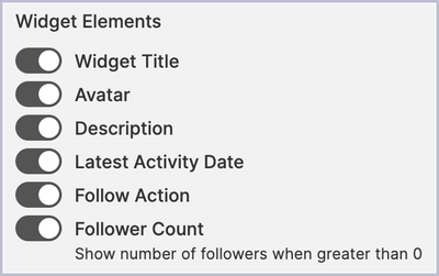 The widget includes a series of elements that showcase different information about the category. You can switch these individual elements on or off using the following toggle controls: