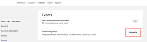 Aurora: Integrate Zoom with Community Events Integrating Zoom with your Community Events enables you to offer real-time user engagement from within the community. With Events, you can host both Zoom Meetings and Zoom Webinars. Zoom Mee...Show MoreUpdated 10 months agoView ContributorsVersion 7.0