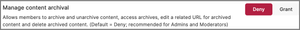 Active communities, especially those of large enterprises, tend to have a lot of content. Over time, these communities can become cluttered with outdated, misleading, or obsolete content, making it more difficult for members to find the content they need. To keep content and conversations fresh and relevant, good content hygiene is important. Admins and moderators should regularly review site content and archive content that is no longer accurate, timely, or relevant. Aurora Communities include a Content Archive feature. When Content Archive is enabled, members with the appropriate permission can: Archive/unarchive knowledge base articles, blog posts, discussions, events, and ideas. Provide links to updated or related content in place of the archived content. Access all archived content from Manage Content dashboard . Note: You can archive only at the main thread. Individual replies or whole boards/categories cannot be archived. All user stats (likes, comments) achieved on archived content are retained. No notifications are sent to members when content is archived/unarchived. Admins and moderators can choose to send private messages to members as deemed necessary. Archival process Permissions Admins, moderators, or members with the Manage content archival permission can archive community content. Enable Content Archive feature To enable content archiving in your community, toggle on the Content archive option under Settings > Features > Moderation > Content Archive. Note: This feature is only set at the community level. Archiving content After the above mentioned roles or permission is granted and the Content Archive feature is enabled, members can see the Archive option from the Options menu on the content page. Select Archive to begin archiving the content. Below is an example from a discussion page. View archived content Admins and moderators or members with appropriate permissions can view all archived content from the Manage Content dashboard on the Archives tab. From here, they can unarchive, delete, or add a link to redirect users to related content.172Views0likes0Comments