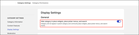 In the community, you can hide any place (board or category) or posts related to a board (Forum, Blog, Knowledge Base, Event, and Ideas) from lists, menus, and search. Doing so hides the places and content from appearing in your community structure but still keeps them available to members via direct link to the content. To prevent search results from boards being directly accessible, you’d need to make the board private. Hide a place from appearing in lists, menus, and search Let’s take an example where you want to hide a category from appearing in the community place widgets, place picker menus, and search results. To hide a category: Open the Account menu and go to Settings > Community Structure. In Community Structure, click the category you want to hide. Go to Display Settings and toggle on Hide category in place widgets, place picker menus, and search. Similarly, to hide a board, you can go to the specific board and toggle on this setting: Hide content from appearing in a category, community content widgets, and search results Let’s take an example where you want to hide discussions in a specific forum from appearing in a category, community content widgets, and search results. To hide forum content: Open the Account menu and go to Settings > Community Structure. In Community Structure, click the forum you want to hide. Go to Display Settings and toggle on the Hide forum posts in content widgets and search. Similarly, you can hide Blog posts, Knowledge Base articles, individual events, and individual ideas of the respective boards from appearing in the category, community content widgets, and search results.239Views2likes0CommentsAurora: Permission descriptions