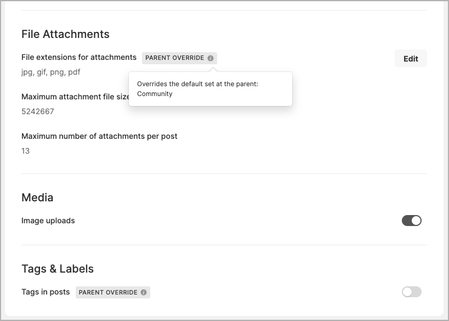 Setting inheritance applies settings at higher level places to lower level places in the community. Settings at the community level are automatically applied to other (lower) places in the community. This applies to most settings in the admin panel that exist at both higher and lower level places and provides the benefit of setting a template for each new place that gets added, which saves you from having to adjust every setting every time. How does it work? The community level is considered the highest place in the community, and all other places in the community (categories, boards, blogs, etc.) are considered children of the community node. They follow this hierarchy: Community > Category/Group > Board (Knowledge Base/Forum/Blog/Ideas/Event) The community node itself sets the default values for the community as a whole. Provided you make no changes to the settings for any other places in the community, they will use the value set at the community level. Categories can also set the default for their child places. If you decide you want a child place to have a different value for some setting than its parent, then you can simply adjust the setting for that specific place. When you’ve adjusted a setting for a child place, a PARENT OVERRIDE indicator is displayed next to that setting for the child place to indicate that it overrides the settings of its parent. Related topics: Permission descriptions200Views0likes0CommentsAurora: Search for a container or board