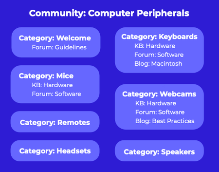 This quick reference guide lays out the hierarchy and meaning of some of the site structure terminology in Khoros Community Aurora. Hierarchy Glossary Term Definition Blog Board that houses blog posts Blog post Individual post on a Blog board Board General term for lower-level Place that holds content; encompasses Blog, Event board, Forum, Knowledge Base, and Ideas board Category Highest-level Container in your community; can contain Groups and Boards Comment A top-level response to a post on a Board Container General term for higher-level Place that houses Boards; encompasses Category and Group Content Collective term for posts (for example, “Our community contains a lot of content about our products.”) Content Type General term for the style of content that coincides with the Board types: Blogs, Events, Forums, Knowledge Bases, Ideas Discussion Individual post on a Forum Event board Board that houses events Event Individual post on an Event board Forum Board that houses discussions Group Higher-level Container that enables community members to engage around a common theme or purpose; can contain Boards of one content type Ideas board Board that houses ideas Idea Individual post on an Ideas board Knowledge base Board that houses knowledge base articles Knowledge base article Individual post in a knowledge base Place General term that encompasses Containers and Boards Post General term for an individual piece of content if type is irrelevant; encompasses blog post, event, forum discussion, knowledge base article, idea (for example, “If you want to make a post in our community, sign in first.”) Reply A response to a comment Related topics: About Community site structure Community Structure Best Practices537Views1like0CommentsAurora: Move, reorder, or delete containers or boards