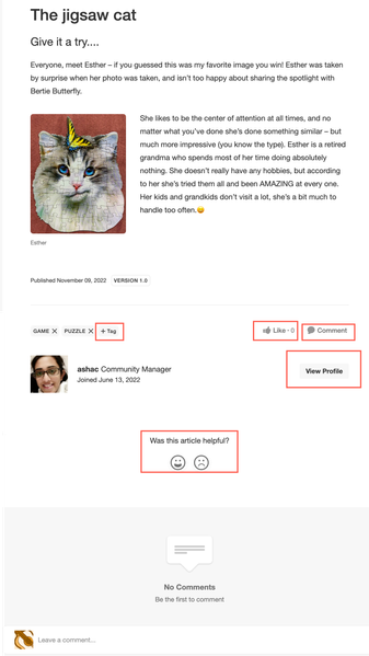 Community members can create knowledge base articles in KB boards they have permission to access. When authoring articles, you have the option to publish immediately or save your progress, and edit or publish at a later time. 25 STEPS 1. On your Knowledge Base board, click Start your article. If you do not see this button, check with your Admin. 2. The article editor opens 3. Enter a Title. 4. Optionally, type an Introduction 5. Enter the content for you article. 6. Use the editor tools to modify the look and feel of your content 7. For example, add a smiley! 8. 9. Let's take an example on uploading an image. To upload images, click Camera 10. Choose from the dropdown from where you want to upload the image 11. You can also copy-paste an image. Use the re-size options to resize the image 12. Drag and drop the image to rearrange it. 12b. Drop 13. 13b. Drop 14. 15. Add a caption 16. Optionally, add attachments. 17. Add Tags to categorise your content and make it more findable. 18. Click Tag 19. Click Tag 20. Start typing a tag name. You can either select from predefined list of tags or add new ones. These depend on the Community Settings for Tags. 21. Tags added are displayed 22. Optionally, you can add Article Summary and SEO Content 23. Select Notify Followers, if you want the followers of this node or article to be notified of changes. 24. When your content is ready to be published, click Publish. 25. The article is published. The article is immediately available to members on your Community. Here's an interactive tutorial https://www.iorad.com/player/2051649/Start-an-article Published articles are available immediately in the community. When other members find and read this content, they can like or comment on it. Members with appropriate permissions can view the author's profile, mark if the article was helpful, and add more Tags. As an author, you can always come back and edit this content later to add more info or make any corrections. 10 STEPS 1. While creating your content you can always save the draft and come back later to work on it. Click Save Draft 2. The draft is saved with a version number 3. Let's see how you can find this draft. Go to the board where the draft was created. Click Options menu and click Manage Content 4. The Content Management Dashboard opens. 5. You are automatically taken to the Drafts tab 6. Depending on your permission, you can see all the drafts. Members can mostly see only their own drafts. Click the article you want to work on. 7. When the draft is ready to be published, click Publish 8. The published version get a new version number. 9. Your draft is published. 10. Scroll up and that's it. You're done. Here's an interactive tutorial https://www.iorad.com/player/2051697/Intermitted-save--drafts Notes: You can use markdown syntaxes while writing the content instead of formatting the text using toolbar options. Also, you can use other keyboard shortcuts to work quickly and efficiently. Learn more about keyboard shortcuts. While creating an article, the content is auto-saved. Upon reloading the page, the content is auto-recovered and you can continue to edit. Admins and members who started the article or have edit access to the article can add or remove tags.. By default, members who comment on an article, automatically follow or subscribe to the article. If you do not want the "Helpful Vote" to be visible to your readers on published articles, please contact Support. Permissions Members with the Create, edit, publish, and manage articles permission have total control over the Knowledge Base node. They can create, approve, manage, and publish articles. By default, this permission is denied. To start your own article, you must have the Start new articles and edit drafts permission. This permission is granted by default to Authors. Members with the View draft articles permissions can view the draft of articles. Managing published articles Members with elevated permissions (like admins and moderators) can perform a variety of content management tasks on published KB content. These tasks include: Move the article to another location on the community View the revision history of an article Edit and restore Delete the article Reject Content Report Content Block edits to the article Block comments Most of these tasks are available from the Options menu: Note: If you don’t see any of these menu options, you do not have the required permissions to complete these tasks. Related topics: Create a Knowledge Base (KB) board Commenting on articles Edit articles Publish articles Report inappropriate Follow Content Tags447Views0likes1CommentAurora Product Coaching Session: Spam Management Best Practices