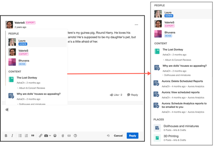 Mentions enable members to call out other community members and community content within a post. Aurora supports three kinds of mentions: Member Mentions Content Mentions Places Mentions Note: Product Mentions will be available in a future release. With Member Mentions, community members can call out other members in their posts and invite them to join the conversation. You might mention a community member when you know they can answer a question or provide valuable insight into a thread. Or, you might just want to make sure they see it when you want to say thank you or give public praise. Content Mentions enable community members to call out specific posts within the body of a post. Additionally, you can use Content Mentions to mention other places in the community, such as a specific category or board. It’s a way to quickly embed a link to other content in the community. Places Mentions allow community members to highlight specific locations, such as categories or boards, making it easy to reference and link to other content within the community. Mentions are supported in all content types and in replies/comments. When you enter the @ symbol while creating a post, suggestions are displayed in this order: Members: Participants from the conversation thread based on relevancy Content: Content you created, by recency Places: Places you follow Mention notifications When members are mentioned in posts, they are sent emails to let them know. The email uses the Member Mention notification email template. (If members are mentioned multiple times in a post, they are sent only one email.) Additionally, members mentioned in private forums that they cannot access will not receive notification emails. When a member’s content is mentioned in posts, the member is also sent an email to let them know. The email uses the New Content Mention notification email template. Mentions you receive are also shown in your community notifications (bell icon). Related topics: Manage Member Mentions permissions (admin) About Email Notifications366Views0likes9CommentsAurora: Member metrics for ranking formulas