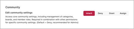 As an admin, you can also manage the permission for who can create and edit ranks. Ranks permissions are granted by default to the Administrator role. If you need to grant the ability to manage ranks to other roles, keep in mind that the permission associated with this ability allows full permissions to update the community: Edit community settings. This permission can be granted only at the community level. As noted in its description, the Edit community settings permission allows members to access core community settings, including management of categories, boards, and member roles, so grant this permission with caution. To manage this permission: Navigate to Admin > Settings > Users > Roles and Permissions. In the row of the role for which you want to manage this permission, click the Options menu and then Edit. In the Permissions area, below Community, locate Edit community settings. Select Grant or Deny as required. Related topics: About member Ranks and ranking formulas Create a rank About roles and permissions Permission descriptions120Views0likes0CommentsAurora: Delete a rank