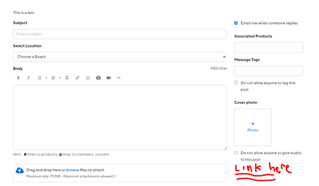 Hello, How can I add the root message (Topic) and also the Solution to every page? At the moment I only see them on the first page, but If I go to pagination number 2 I only see the comment list. I hope I was clear on my questionSolved484Views0likes5CommentsAdding link to post editor page